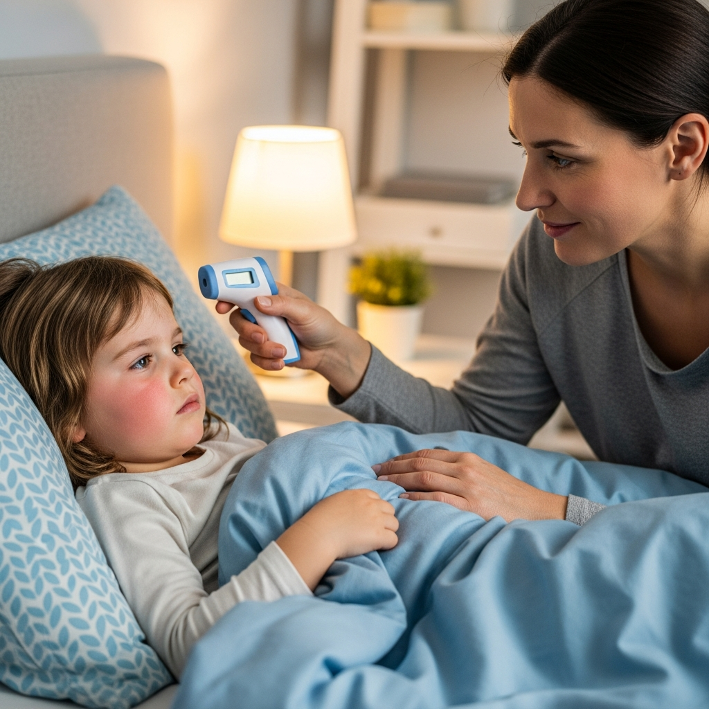 If high fever, breathing difficulty, or dehydration develops, seek medical care promptly.